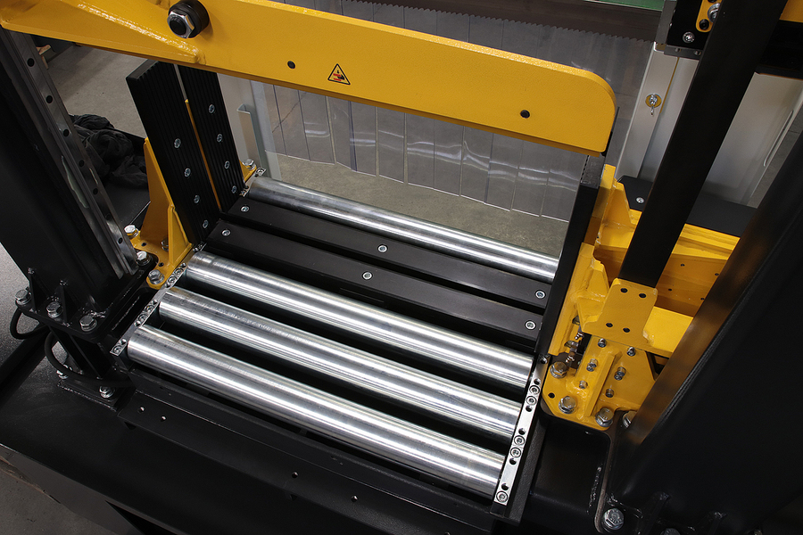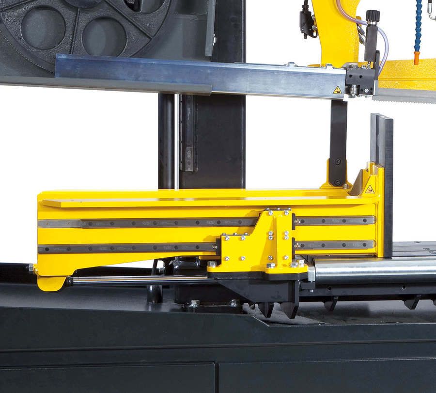 Hydraulisch aangestuurde, dubbelzijdige automatische regeling van de zaagbandinvoer in de snede, afhankelijk van de weerstand van het te zagen materiaal. Dit verkort de zaagtijd en levensduur van de zaagband aanzienlijk.